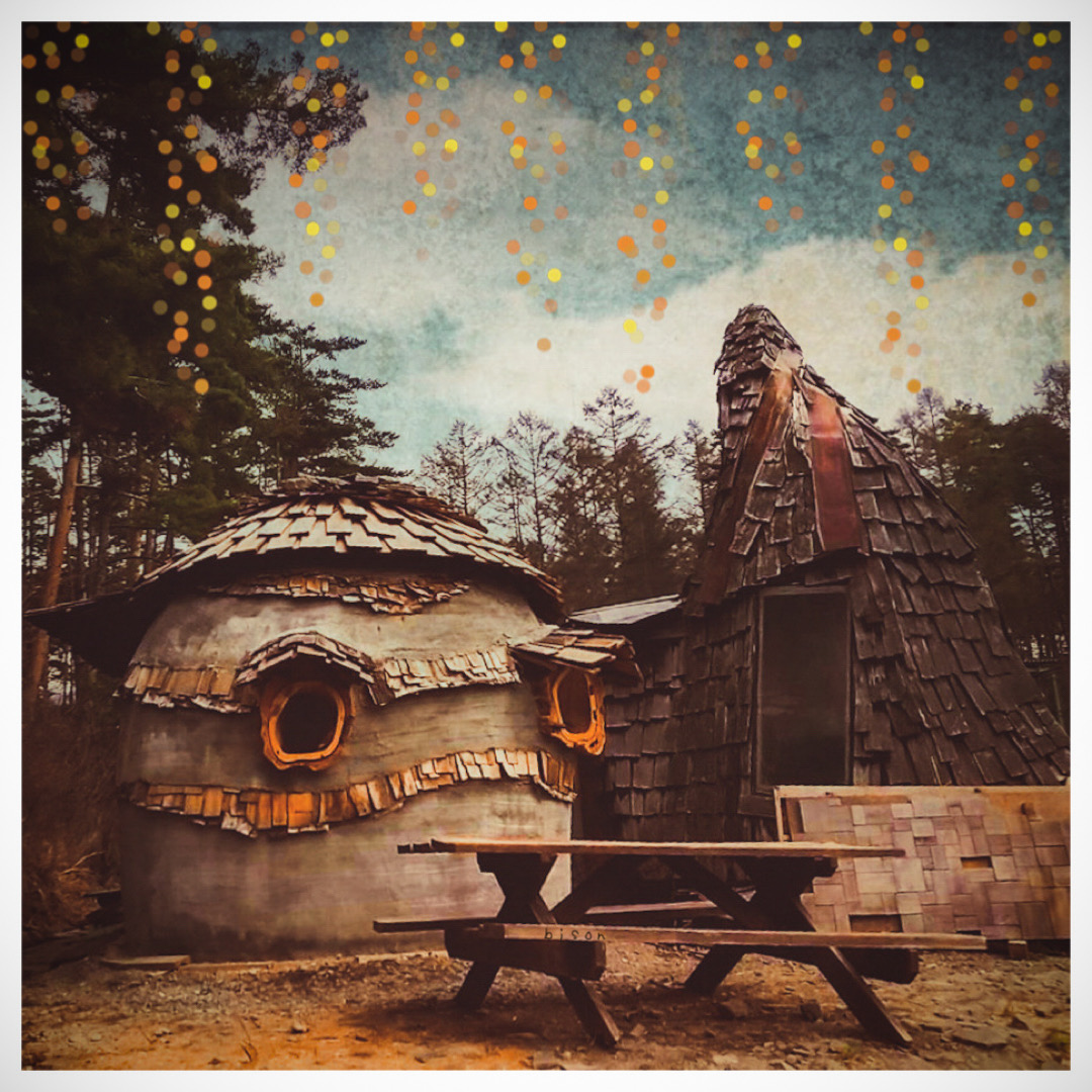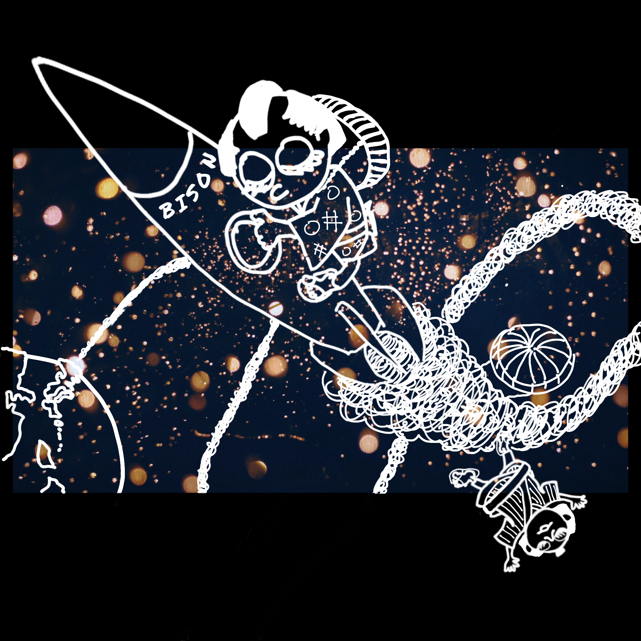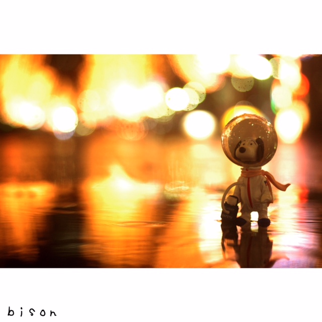 雨の中イルミネーションをバックに宇宙飛行士を撮ってみました。